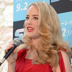 19日、都内にて開催された映画「ワイルド・スピード SKY MISSION」ブルーレイ&DVDリリース記念イベントに出席。同作のゴージャスなパーティーシーンにちなみ、ボディラインがくっきりとした真っ赤なドレスに身を包み登場した。
