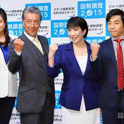 24日、都内にて行われた国勢調査のイベントに出席。ブルーのタイトなパンツにホワイトのジャケットを羽織った姿で颯爽と登壇。新CMにて国勢調査員の代表を演じた藤原は、背筋を伸ばし、凛とした表情で、大変な作業に挑む調査員たちに激励を飛ばしている。