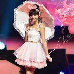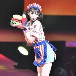 三吉は「みよしーくれっとスパイ」をテーマに真っ赤なチューブトップにブラックレザーのショートパンツで美脚をあらわにしたセクシーなスタイル、江野沢は「ハートロリータ」と題して白×ピンクをメインカラーにガーリーなファッションを披露し、大歓声を浴びた。