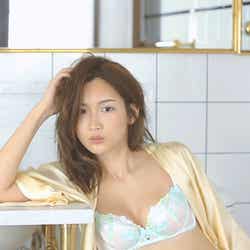 モデルの紗栄子が、ランジェリー姿で美バストを披露した。