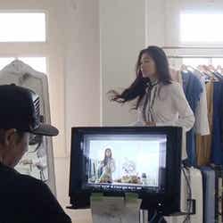 撮影当日は、まさかの大雨。急遽設定を変えてトライした「映画のワンシーン」。雨の中での篠原はより一層大人な表情を見せてくれ、カメラ越しのアップの篠原の美しさにスタッフ・エキストラ一同ドキッとした。また、画面に映るところはもちろん、見えないところまでもこだわって作ったセットの楽屋は、撮影当日のどしゃぶりの雨を吹き飛ばすようなとびきりおしゃれで明るい空間になった。