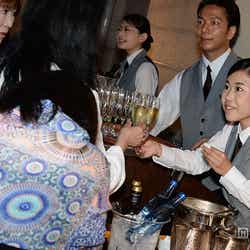 この日、会場に集まった観客はホテルの夜景が見える空間で、高級シャンパンのドンペリやミシュラン星獲得のフレンチや神戸牛を堪能。ヴァイオリニストのNAOTO、サックスプレイヤーの遠藤真理子による演奏や、ビューティーコンサルタントによるメーキャップアドバイスを体験できるブースなども設けられ、リュクスな気分でラグジュアリーホテルでのパーティを満喫した。