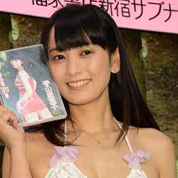 またこの日は、白×ピンクのビキニ姿で登場。この衣装は「用意していただいた中から私が選びました。白が好きなので」と自らセレクトしたと話し、自信のある部分を聞かれると「くびれですかね」とアピール。「出させてもらえるだけでもありがたいので、来ていただいた方にせっかくだったら…」とサービス精神旺盛な振る舞いを見せた。