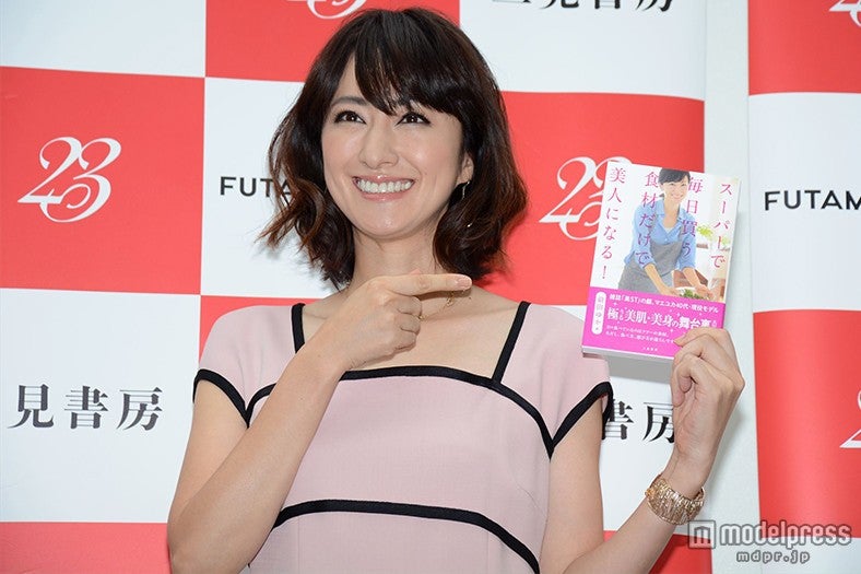 6日、都内で行われた著書「スーパーで毎日買う食材だけで美人になる!」の発売を記念したトークショー&サイン会前の囲み取材に出席。