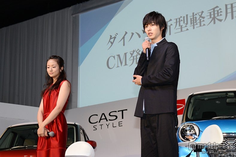 9日、都内で行われた新CM発表会に出席。ドラマ「黒の女教師」(2012、TBS系)などで共演している2人は、約3年ぶりの対面といい、木村が「担任と教え子という関係でしたが、当時よりも大人っぽくシュッとされて。また背が伸びたんじゃないかな」とニッコリ。「ご活躍されていますもんね。“壁ドン王子”とか。活躍見ていました」と映画『L・DK』(2014)での山崎の活躍ぶりに触れると、山崎も「“壁ドン王子”と呼ばれました」とはにかむなど、仲睦まじいやり取りを見せた。
