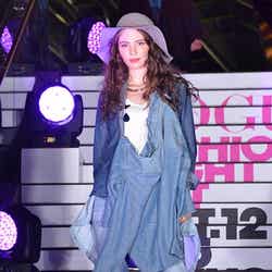 ラストにランウェイを歩いたおのののかは、黒を基調にしたロックスタイルをクールに着こなし。観客の声援に手を振って応えるなど、ステージを楽しんでいた。