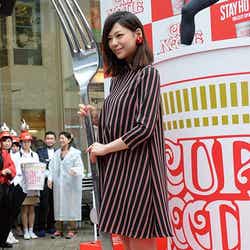また、カップヌードル型の巨大オブジェに西内がフォークを突き刺すと、お笑いタレント・カラテカの矢部太郎が飛び出す“逆バンジー”アトラクションも行われた。西内は飛び出した矢部を見上げて「キャー!」と楽しそうな歓声を上げ、イベントを盛り上げた。(modelpress編集部)