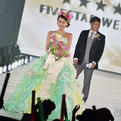 あびる優&才賀紀左衛門夫妻、ウェディング姿で公開キス&バージンロードに会場熱狂<関コレ2015A/W>