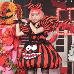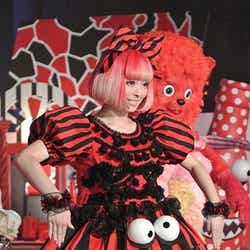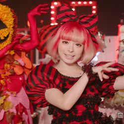 また、きゃりーは、「ダンスの振り付けがとてもかわいく、誰でも真似しやすいゾンビ風の振り付けになっているので、そこの部分を一緒に踊っていただければ、楽しいかなと思います」と見どころを解説。「いつもは毛先に色を入れるところを、今回は頭から赤色に。大きなリボンも付けているんですよ」とヘアカラーについて楽しそうに語った。
