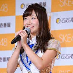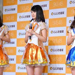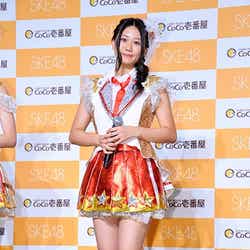 25日、都内にて行われたイベントに出席。SKE48が10月で7周年を迎えることについて、「SKE48はダンスが激しいので、汗をたくさん掻きます。汗が一番似合うパワフルなグループだと思うので、一生懸命さのようなものをこれからも忘れずに、頑張っていきたいなと思います」と意気込み、「新しいメンバーもたくさん増えたので、みんなと力を合わせて、48グループで1番と言われるグループにしていけたらいいなと思います」と宣言し目を輝かせた。