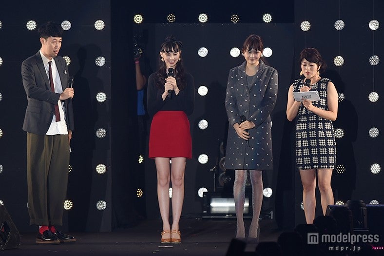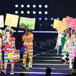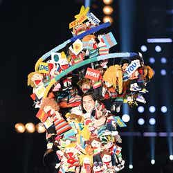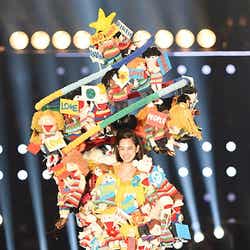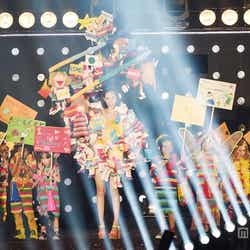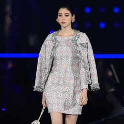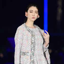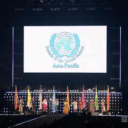 ファッションショーのトップバッターも務めた水原は、ファッションデザイナーの山縣良和氏がデザインした“総額約1000万円”、約100着のカシミアニットからなる巨大な衣装をまとって子供たちと登場。TGCと国連の友Asia-Pacific(FOUNAP)が提携して実現したステージ「TGC UN ACTION SUPPORT STAGE」では、香里奈を含め7人のモデルと、TGC公式 UN ACTION SUPPORTモデレーターの小松田有理が、国連の提唱するメッセージを盛り込んだフラッグをステージ上で掲げながらランウェイを闊歩した。