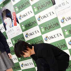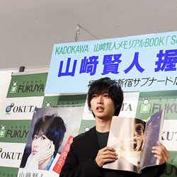 整ったルックスからクールなイメージの強い山崎だが、20歳の1年間に密着した今作にはおちゃめな素顔が満載。この日も「表紙と同じポーズをして」というカメラマンのリクエストに答え、ニッコリ笑顔を披露。「山崎さんはどんな人?」と問われると「こんな人です!これ(=書籍)に詰まってます!…詰まってない部分もあるんですけど」とはにかみ、笑いを誘った。