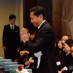 この日は参列者約900人、ファン約600人が川島さんと最後の別れをするために集結。出棺時、最後のあいさつに立った夫でパティシエの鎧塚俊彦氏は、寂しさと辛さを抑えきれず、何度も顔をゆがめながら、「女房は拍手をいただけることが生きがいとしていたと言っても過言ではありません。最後は大きな拍手で女房を送ってやっていただきたい。アンコールはございません。割れんばかりの拍手でなお美を送ってやってください。お願い致します」と参列者に呼びかけた。