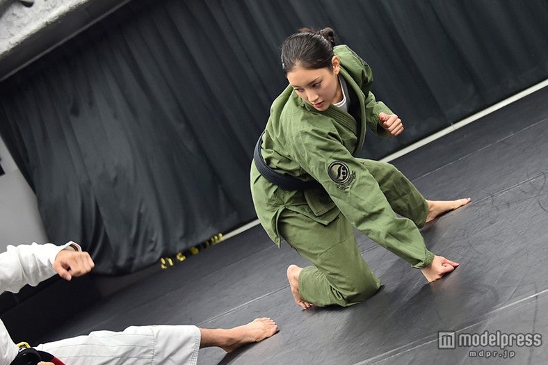 柔術の練習は、9月初旬からスタート。中学の体育の授業以来という柔道着に身を包んだ菜々緒は、「身が引き締まります」と緊張気味に道場入りした。基本的な受け身から始まり、押さえ込み技の袈裟固めや腕十字、相手の首と腕を捕らえて絞める三角絞め、馬乗りになって抑えこむマウントと、様々な技に立て続けに挑戦。