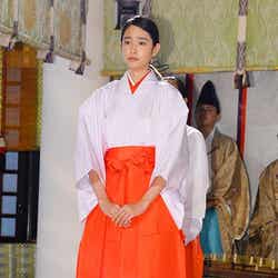 この日のイベントには、巫女装束を身に着けて登場。「重みがあります」と本物の巫女の姿になった感想を語った。(modelpress編集部)