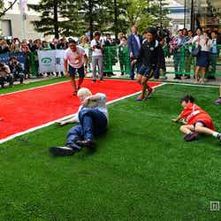 ストリートラグビーとは、「スポーツの存在価値と社会貢献性を未来に生かす」というテーマのもと、各地公道に芝生を張り、周辺地域の子供や大人たちがラグビー初心者でも遊び感覚でラグビーを楽しめるイベント。内容は“ラグビーボールを持った鬼ごっこ”と換言することもでき、ラグビーのルールを知らなくても老若男女が気軽に楽しめる。(modelpress編集部)