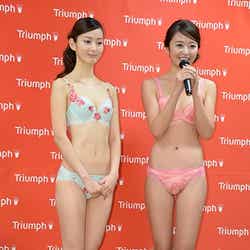 この度新たに選出されたのは、理工学部卒業の理系女子でモデルの川辺優紀子(24)と、「ミス・ワールド 2015」日本代表で現役大学生の中川知香(22)の2人。同日、都内で行われた発表会に、それぞれ下着姿で登場し、引き締まった美ボディを披露した。