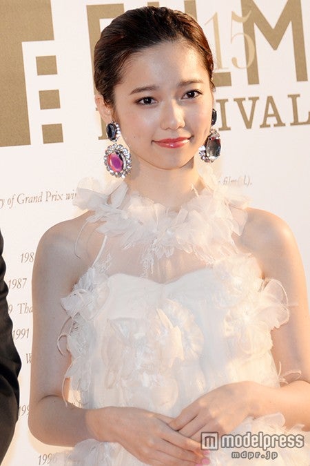 主演を務めるホラー映画『劇場霊』(11月21日公開)の中田秀夫監督とともに登場した島崎。白い羽根をあしらった透け感のあるドレスを上品に着こなし、「ぱるる~!!」と大歓声に包まれながらファンへサインをするなどして“神対応”を見せる一幕も。普段の“アイドル・ぱるる”ではなく、キリッとした女優の顔つきでレッドカーペットを闊歩した。