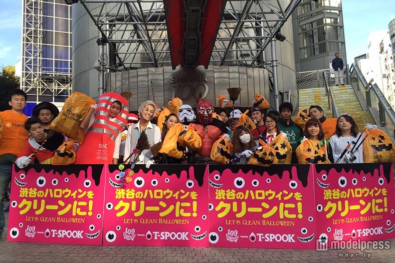 パニック後のゴミ問題も毎年問題になっている。そこで、「渋谷のハロウィンをクリーンに!」をテーマに、T-SPOOK実行委員会とSHIBUYA109のスタッフ約50名が、仮装コスチュームで清掃活動を11月1日早朝に実施。「一緒に掃除手伝います」と声をかけ参加した一般の若者たちのおかげもあって、渋谷の街はクリーンな状態に戻った。(modelpress編集部)