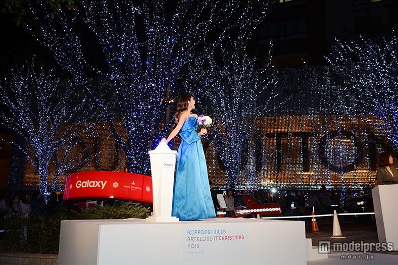 クリスマスシーズンの訪れを告げる点灯者“SNOW QUEEN”に選ばれた森は、オーケストラの生演奏によるクリスマスソングが流れる中、鮮やかなブルーのドレスと、ダイヤを散りばめたピアスやブレスレット、大粒のアクアマリンをあしらった指輪など、総額約8500万円のアクセサリーを身に着けて登壇。「この冬、どこよりも愛がたくさん集まる場所へ…メリークリスマス!」のメッセージと共に点灯スイッチを押した森は、美しい情景にうっとり見入ると「毎年このイルミネーションを楽しみにしていたので、私がまさか点灯式に出られるなんて夢にも思ってなかったので本当にうれしいし、この1年のいい思い出の一つになりました。ありがとうございます」と感激しきり。自身で選んだドレスは「せっかくだからお姫様気分を味わおうと思って」と、ディズニー映画「アナと雪の女王」をイメージしたそう。登壇時、ドレスに足が引っ掛かるというアクシデントもあったが「それもひっくるめて思い出になりました」とはにかんだ。