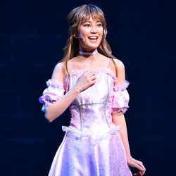 12日、都内で行われたミュージカル『リボンの騎士』の囲み取材に、同じ乃木坂46メンバーで主演の生田絵梨花らと出席した。今回がミュージカル2度目の挑戦となる生田が、「(ミュージカル初出演の桜井に)アドバイスはしましたか?」と質問を受けて考え込んでいると、すかさず桜井は「背中でいつも語ってくれるので!」とニッコリ。生田も「そうですね。背中で伝えています!」と笑顔を見せ、仲睦まじい様子を見せた。