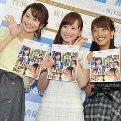 また、お気に入りのカットについて皆藤は「早稲田大学に通っていたときに校舎の中で撮ったのですごく印象的です。友だちがいたら恥ずかしいなと思いながら撮っていたことを思い出します」と回顧し、高見は「ハワイのプールで撮影したものなんですけど、プールにたくさんの生のお花を浮かべてもらって、普段こういうシチュエーションで写真を撮っていただく機会がないので、気に入っています」と満足気。岡副は「普段、こういう真面目な顔をしないんですけど、背伸びをした感じで大人っぽく撮っていただきました。自分で見ても違う人みたいで恥ずかしいんですけど(笑)」と笑顔を見せた。皆藤「めざまし」卒業後の変化を語る