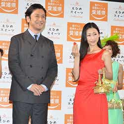18日、都内で行われた「えひめスイーツコレクション」キックオフイベントに俳優の石丸幹二とともにゲスト出演。橋本マナミなど新たなセクシータレントの台頭について「ライバル?」などと聞かれた壇蜜は「老兵は死なず、老い去るのみ。同じ土俵に上がるのではなく、粛々と自分の年齢と向き合っていくだけ」と微笑し「ほかのタレントさんの事を公の場で言うのは“瑞々しくない”ですよ」とイチゴにかけながら余裕の表情。するとTBS系連続ドラマ「半沢直樹」で共演した石丸は、すかさず「壇蜜さんはオンリー・ワンですよ」と誉めそやしていた。