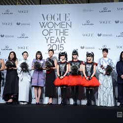 「VOGUE JAPAN Women of the Year 2015」を受賞したのはデザイナーの阿部千登勢、染織家の志村ふくみ、ダンサーの菅原小春、作家の西加奈子、女優の広瀬すず、歌手のBABYMETAL、女優の吉田羊、水泳選手の渡部香生子の9名(※志村は欠席)。また、「Rising Star of the Year 2015」をファッションデザイナーの黒河内真衣子が受賞した。