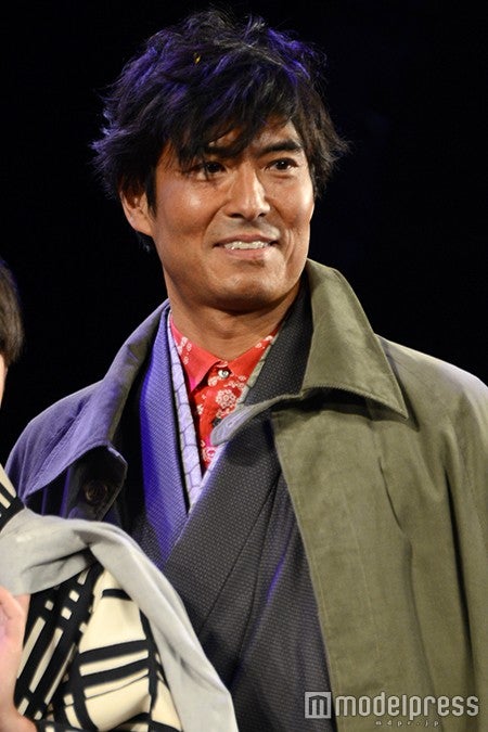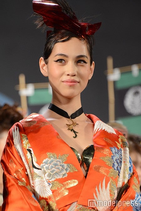 「ランウェイ初体験」だという小栗は、美女4人を引き連れウォーキングした感想を「ありがたい(笑)。めでたいですね」と笑顔。ランウェイ先端では、水を口から吹き出すパフォーマンスも披露したが、その点については「古田新太さんが、劇団☆新感線のカーテンコールで必ず水を吹くんですけど、パクらせてもらいました」と先輩への“敬意”であることを明かした。