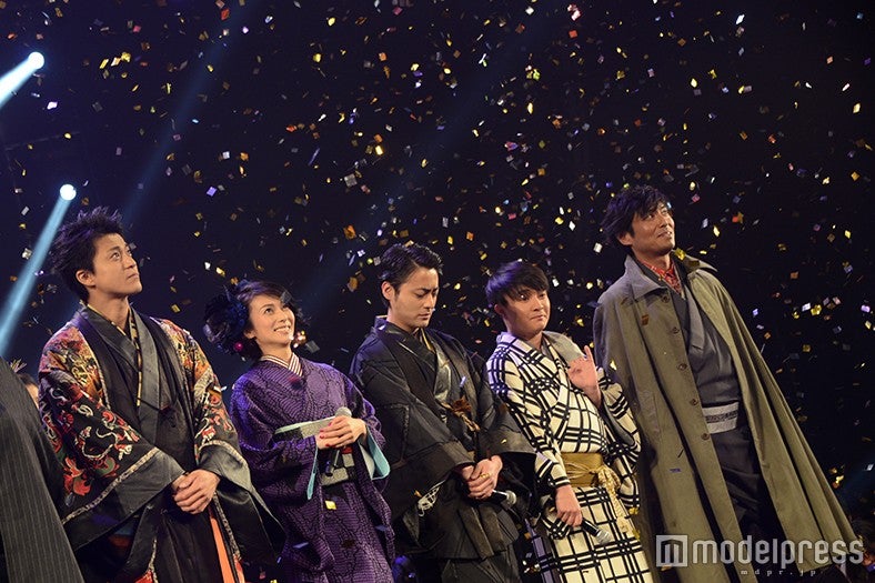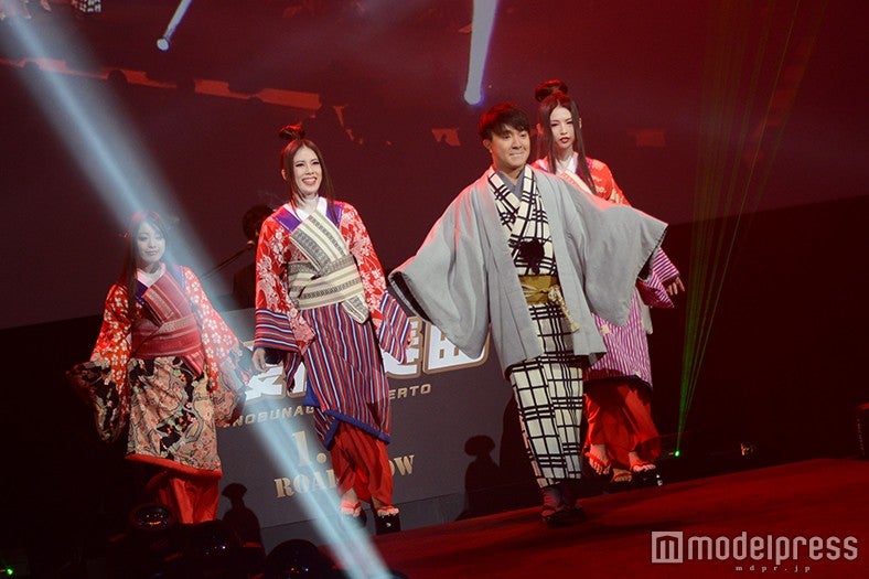 ドラマシリーズから劇中の音楽監修を務める☆Taku Takahashi(m-flo)のDJをバックに、このほか柴咲コウは着物女性、向井理は戦国武士、藤ヶ谷太輔(Kis-My-Ft2)は歌舞伎役者、濱田岳は花魁風着物女性、高嶋政宏は外国人男性モデル、山田孝之は猿まわしを引き連れ登場。また、モデルとしても活躍する水原希子は1人でランウェイし、美脚あらわなセクシーなミニ丈着物を着こなし堂々のトップバッターで沸かせた。