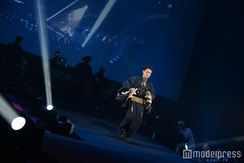 小栗旬、“甲冑”水着美女引き連れ初ランウェイ「ありがたい」 ド派手パフォーマンスも