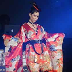 モデルで女優の水原希子が7日、都内にて行われた映画『信長協奏曲』(2016年1月23日公開)完成披露試写会“TOKYO SENGOKU COLLECTION”に出席。最新の和装に身を包んだキャスト陣は、会場中央に設置されたランウェイをウォーキングしド派手に登場。トップバッターを務めた水原は、胸元がざっくりと開いたセクシーなミニ丈着物で美脚をあらわに、堂々のウォーキングを披露した。