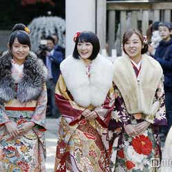 乃木坂46で2016年新成人を迎える“まりっか”こと伊藤万理華が8日、ゆかりのある東京・乃木神社で成人式を行った。乃木坂46には『Ray』の白石麻衣をはじめ、7人ものメンバーが女性ファッション誌の専属モデルを務めるが、伊藤は「私服がオシャレすぎる」として、グループでも一ニ争うファッショニスタとしてファンから注目される存在。この日の晴れ着姿について「マットで可愛い色味と絵本みたいな柄がポイントです。素敵な振袖を着ることができて良かったです」とモデルプレスに語ってくれた。