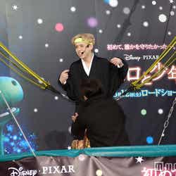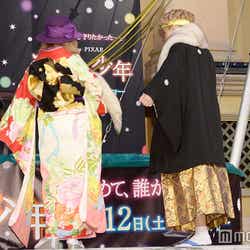 原宿系人気読者モデルの“ぺこちゃん”ことオクヒラテツコと、その恋人で同じく読者モデルのりゅうちぇるが14日、都内で行われたディズニー/ピクサーの最新作「アーロと少年」(3月12日ロードショー)の公開記念イベントに出席。イベントでは、新成人のりゅうちぇるが大人への一歩を踏み出すべく、逆バンジーに挑戦した。