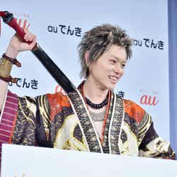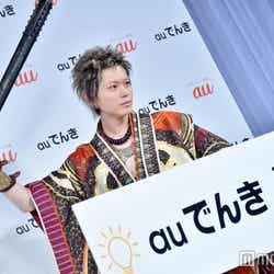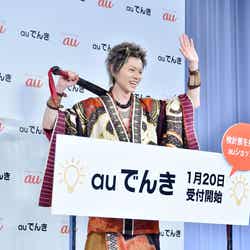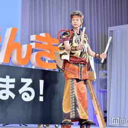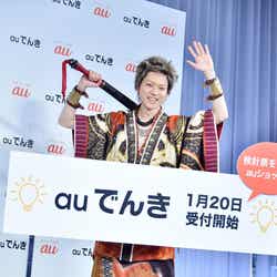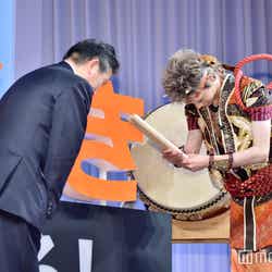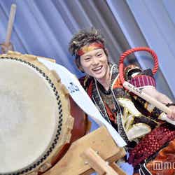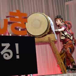 俳優の菅田将暉が19日、都内で行われた新CM発表会におなじみの“鬼ちゃん”姿で登場。「おつかれっす~!」といつもの軽いノリで登場した鬼ちゃんだったが、セレモニーでは新CMと同じく和太鼓の演奏を披露。「よ~っ!」と掛け声をあげながら漢らしく太鼓を打ち鳴らし、セレモニーを盛り上げる大役をつとめあげた。