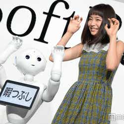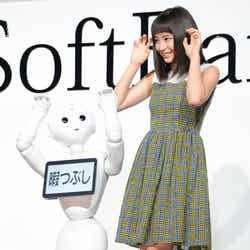 会見では世界初の感情認識パーソナルロボット・Pepper(ペッパー)だけで接客する携帯電話ショップの期間限定オープンが発表され、登壇者が接客デモンストレーションを実施。広瀬は、暇な時間を楽しませる“暇つぶしPepper”から一緒にギャグを披露しようと無茶ぶりされ、「えー?」と戸惑いながらも、「じゃんけんポメラニアン!」とキュートな一発芸を披露した。