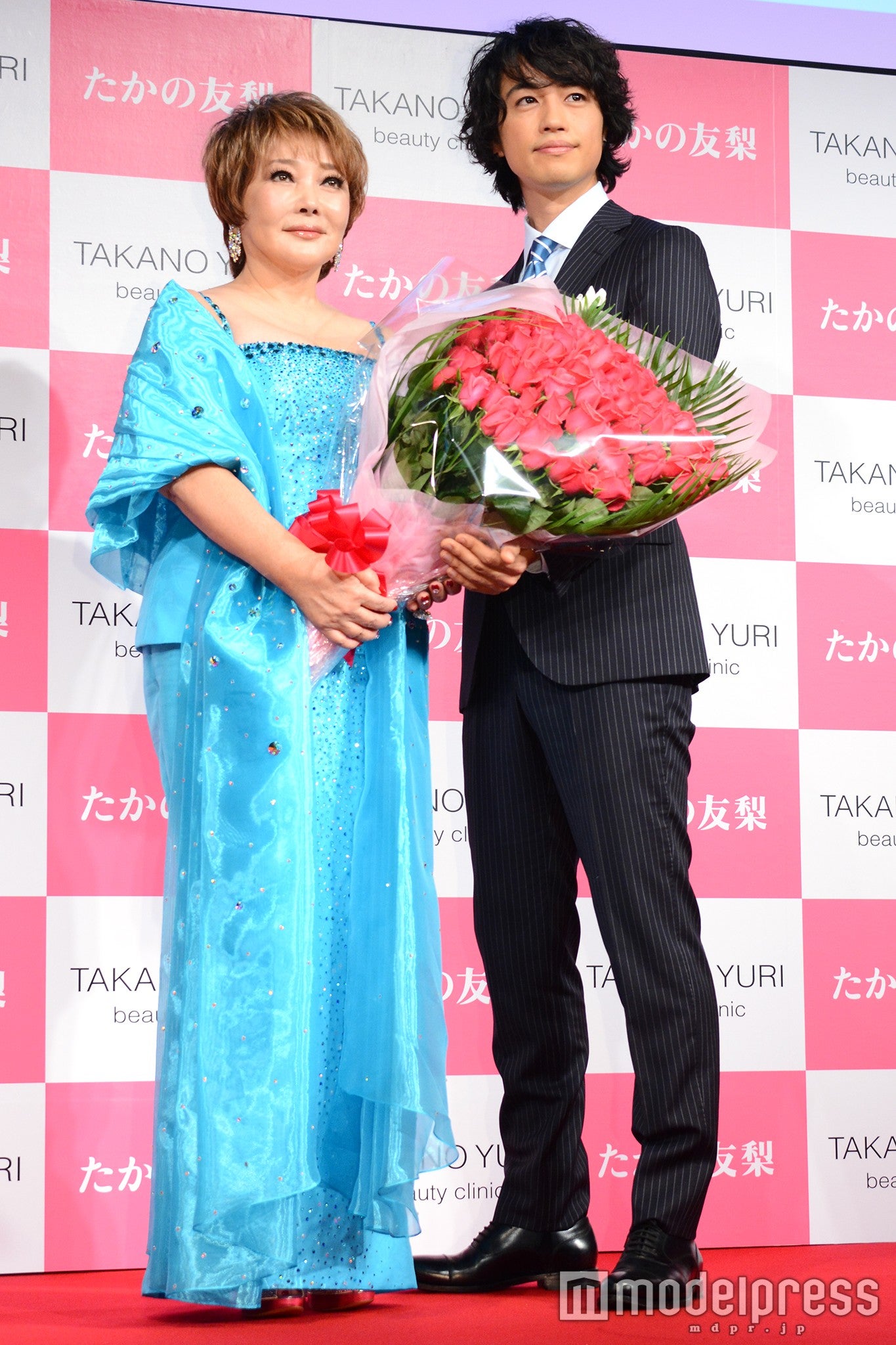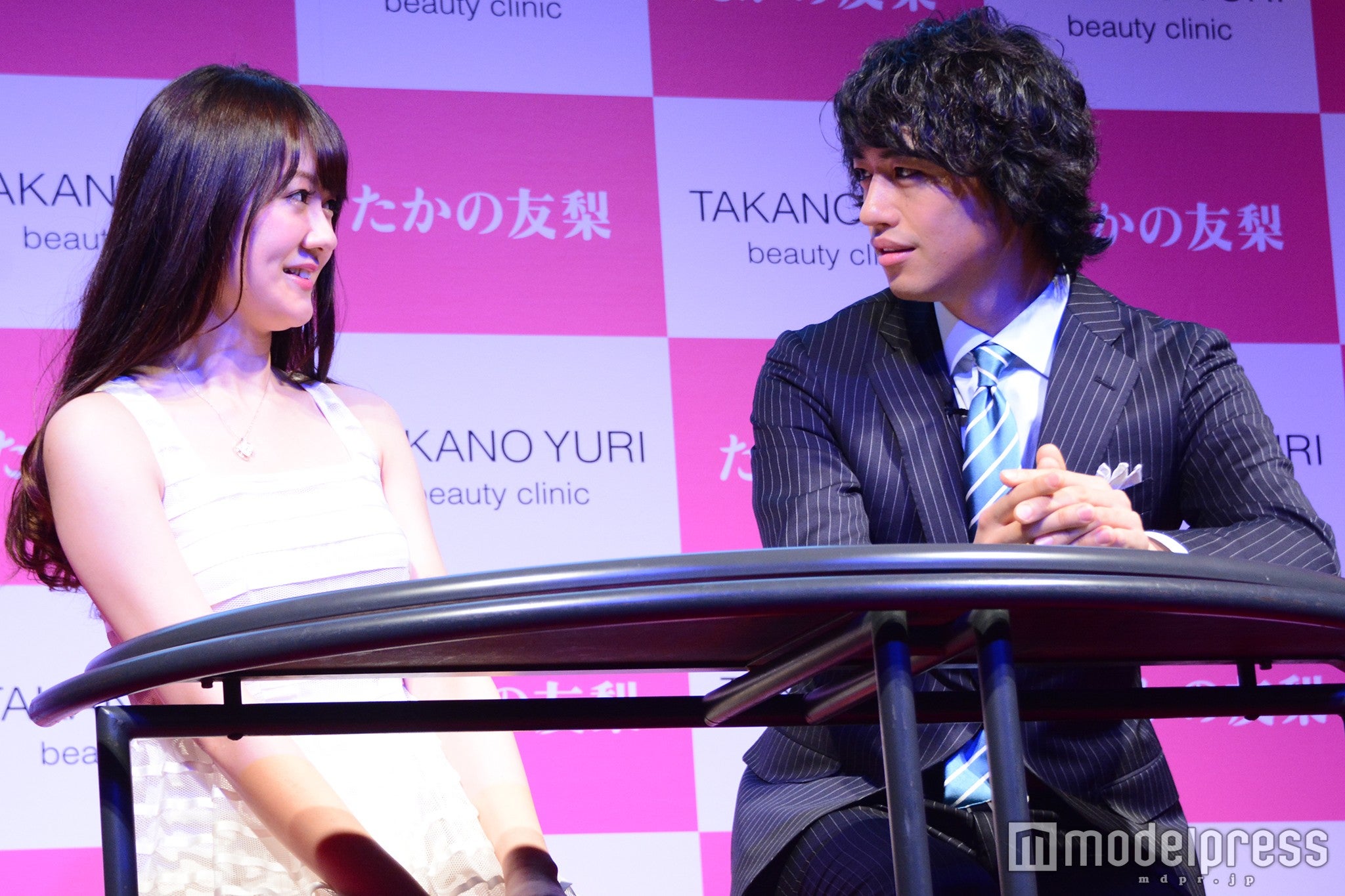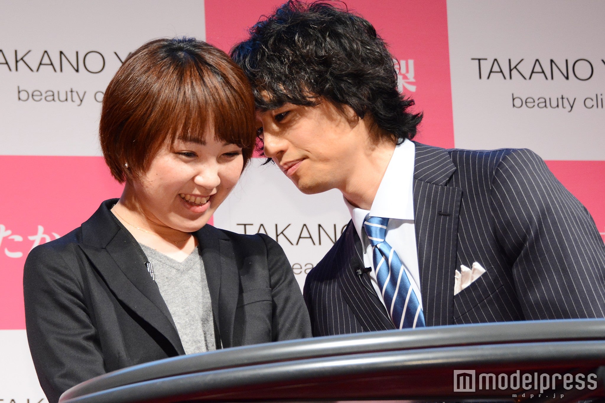 囲み取材の時には、たかの氏が報道陣の女性を指名して「彼女に“顎クイ”してくださる?」と唐突なお願い。斎藤はもとより急きょ相手役を務めることになった女性も戸惑いながら“顎クイ”を実践した。さらに勢いに乗ったたかの氏から「じゃあ私は“壁ドン”でいいですか?」とおねだり。“エアー壁ドン”され「うわ~」とときめくたかの氏を横目に、斎藤は「一発芸だと思ってます」と呟いていた。