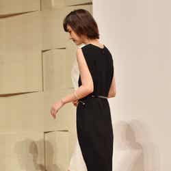 倉科はホワイト×ブラックのシックなミニワンピ―ス姿で登壇。発表会の退出時、報道陣から「プロポーズは受けましたか?」と質問が投げられるも、無言でその場を立ち去った。念願の三島作品出演に感慨深げ