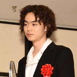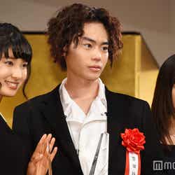 1956年にスタートした「エランドール賞」は優れた映画・テレビの作品、プロデューサー、俳優の顕彰制度(選考対象期間:2014年12月1日~2015年11月30日)。「新人賞」は1年を通じて最も活躍した将来有望な新人俳優に贈られ、有村、土屋、吉田のほか柄本佑、菅田将暉、玉山鉄二が受賞した。ネイビー&ブラックの着こなし