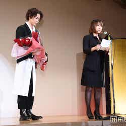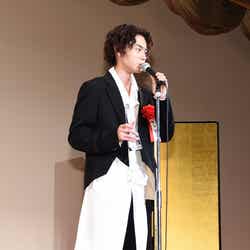 有村は肩部分のカッティングとドレープが印象的なネイビーのドレス、土屋はバラエティ番組に出演した際のロケで購入したという思い出のワンピースを、吉田は袖口にネイビーの切り替えが施されたブラックのオールインワンをそれぞれ着こなし。ファッション好きで知られる菅田の個性的なコーディネートにも注目が集まった。プレゼンターもドレスアップ