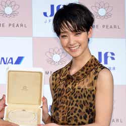 女優の剛力彩芽が9日、「ベストパールプリンセス2016」を受賞し、同日都内で行われた授賞式に出席。最高ランクの宇和海産真珠「HIME PEARL」で作られた総額200万円のネックレスとイヤリングを身に着けた剛力は「温かみと重みがあって、つけるだけで大人の女性に一歩近づけた気がする」と喜色満面だった。