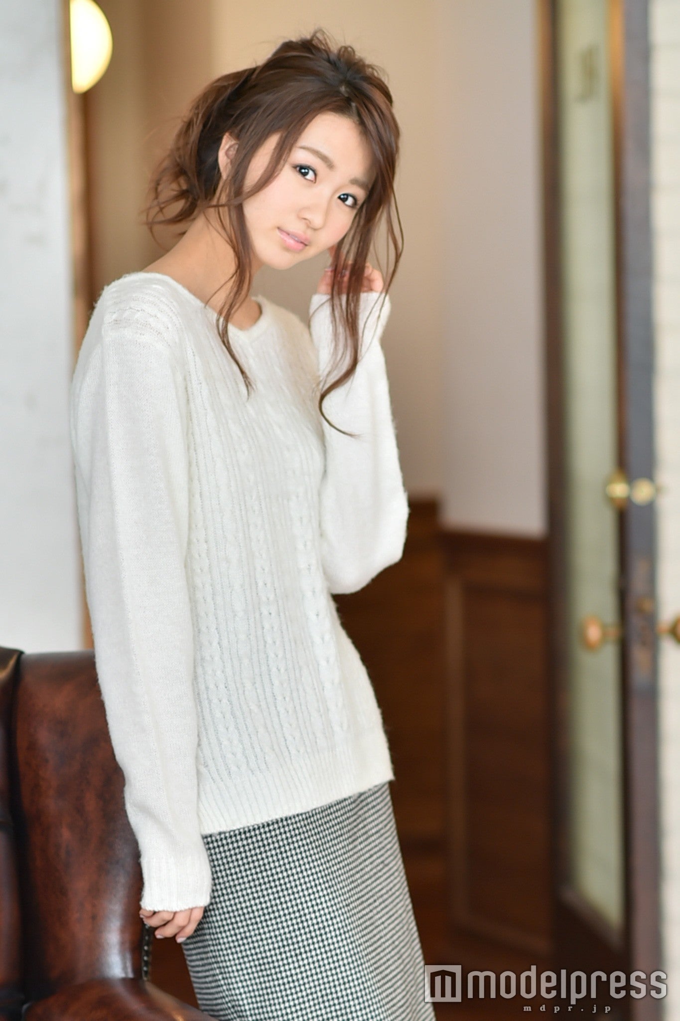 衣装:白ニット/Noela 黒白千鳥格子スカート/ROYAL PARTY