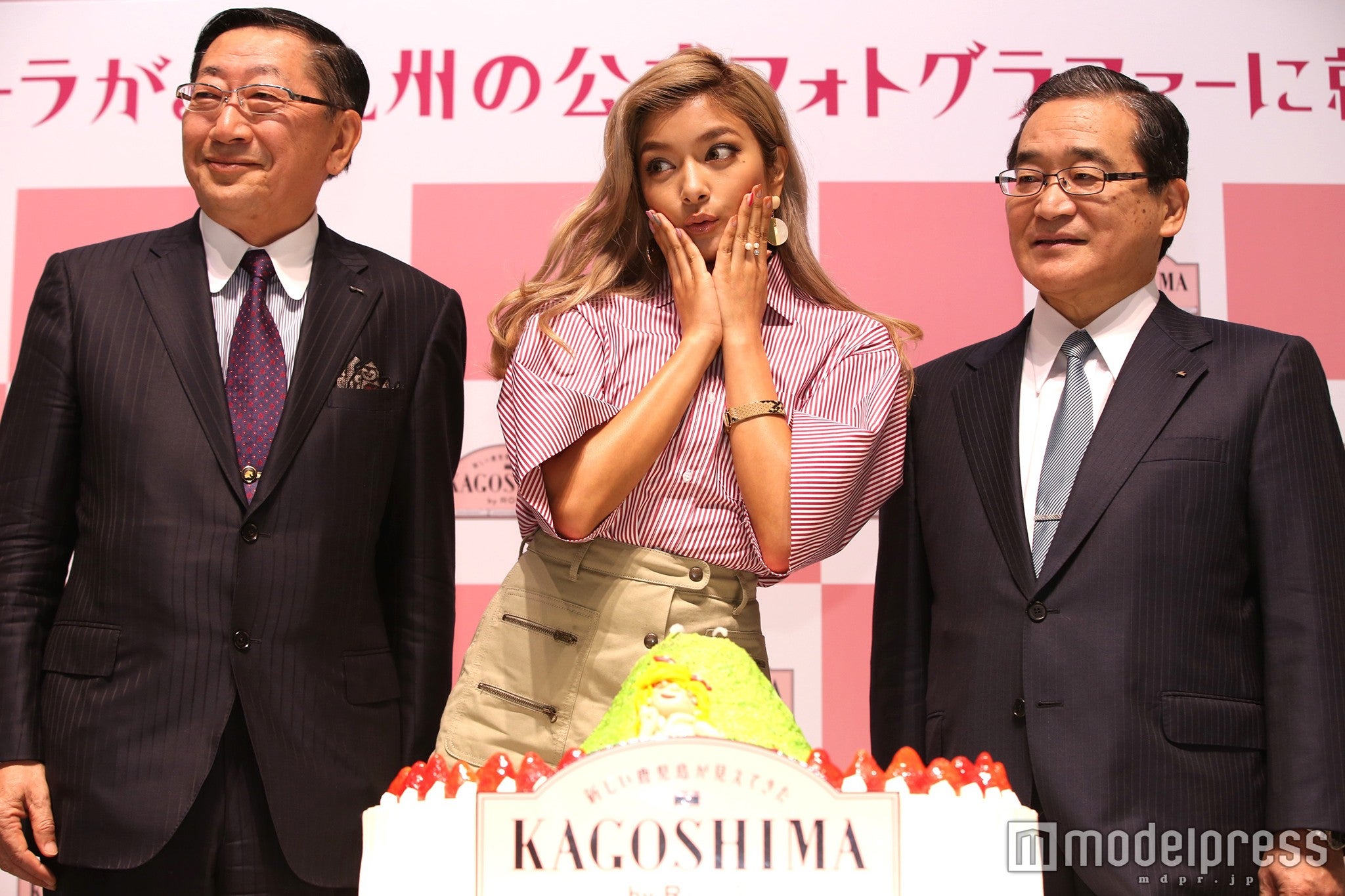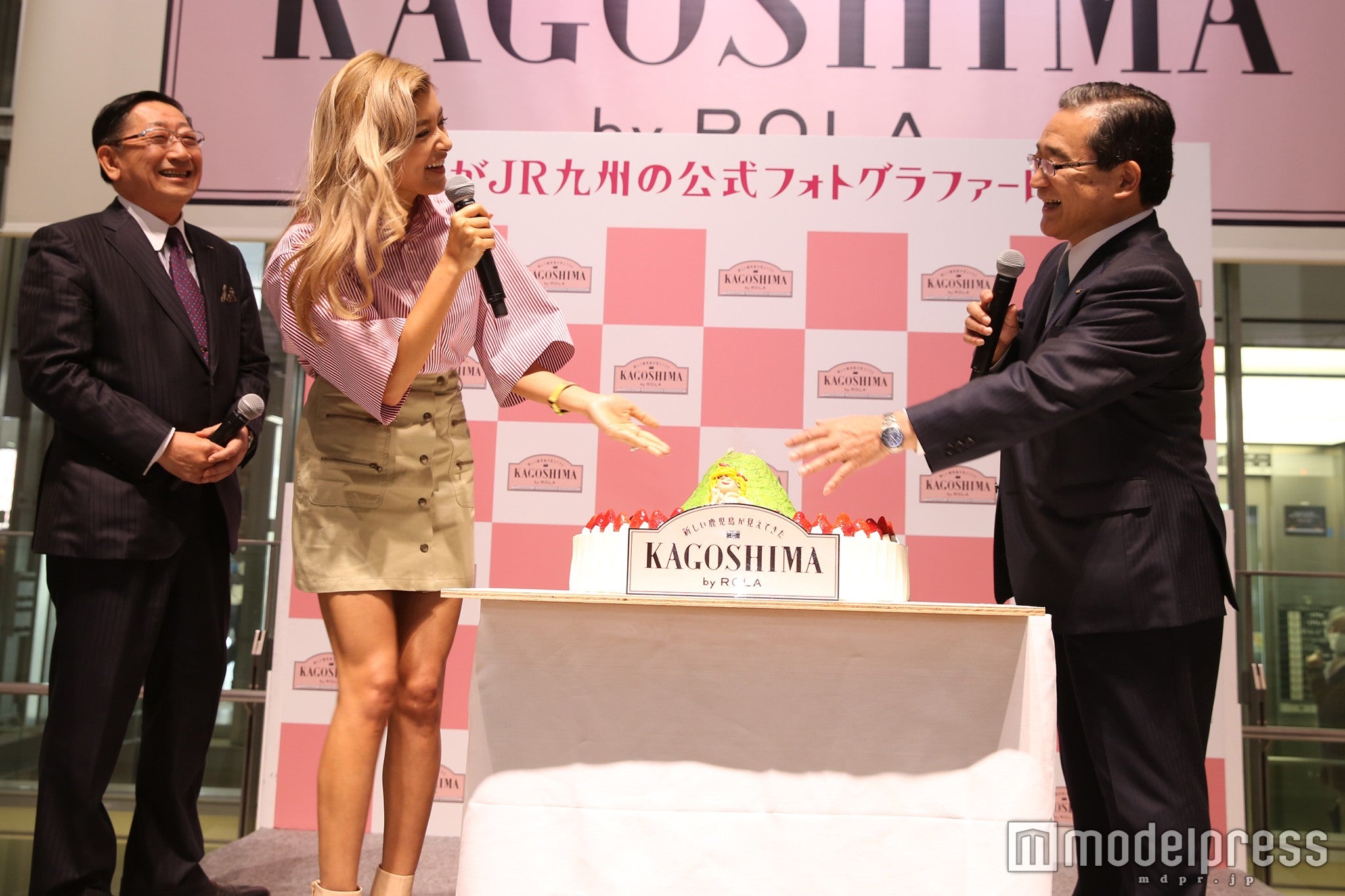 同社の青柳俊彦社長から任命書を授与されたローラは「すっごく嬉しかったし、九州にはお仕事でもちょくちょく来てるんだけど、いっつも楽しみにしていて、知れば知るほど魅力が詰まっている場所だから、本当に任命されて嬉しい」と歓喜。会場に駆けつけた伊藤祐一郎鹿児島県知事から巨大桜島型ケーキがプレゼントを贈られた際には、「すっごい好き!でも、ケーキに乗っているこの私(ローラを模したお菓子)は、ちょっとぽっちゃりしてるけど…でも大丈夫!嬉しい!」と“らしさ”全開で喜んでいた。ローラ「色々食べたんだけど、忘れちゃった」
