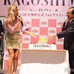 今後、新しい鹿児島の魅力を写真に収め、同取り組みのインスタグラムアカウントなどで情報を発信していくローラ。自身のアカウントは260万人以上(3月4日時点)のフォロワーを有するほどの人気ぶりだが、「目で見て魅力的だなと思ったら、そのまま撮るというよりも、例えば空を多めにいれるとものすごく綺麗に撮れたり、余白を空けて撮るとか、バランスを凄く考えるの。あとはちょっと暗さ調整をしたりして、最後に加工でちょっとフィルタをかけて、濃い目に色を出したりして、もの凄く細かくやるの!」とテクニックやこだわりをたっぷり紹介した。巨大ケーキに大はしゃぎ
