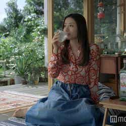 庭先のウッドテラスで、ロックグラスに注いだ同製品をひと口飲んだところから始まる同ムービー。石原は「女子ってけっこう妄想してるんだよ、ひとりのとき。人には言えない妄想」と、隣にいる恋人に思わせぶりな表情で語りかける。石原さとみ「言えない、絶対ひくもん」