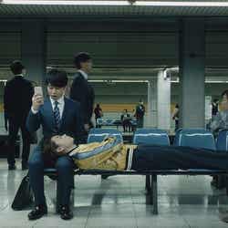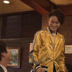 自分で作るほど、大のスカジャン好きの菅田は、「これはハイブランドな物なので、僕の普段着られないような高価なものです(笑)。とても素敵です」と撮影で着ていた黄色のスカジャンにご満悦。奇妙な言動を繰り出す謎の男という難しい設定だったが、甘えん坊・クール風・ぶりっ子など自由自在にアドリブを披露して撮影現場を笑いに包んでいた。サラリーマン役との呼吸が鍵を握る喫茶店での撮影は、互いに少し遠慮ぎみにスタート。しかし、飛び散ったタバスコの匂いがターニングポイントになったようで、その後2人はナプキンで顔をグチャグチャするなど、阿吽の呼吸で様々なアドリブを見せた。