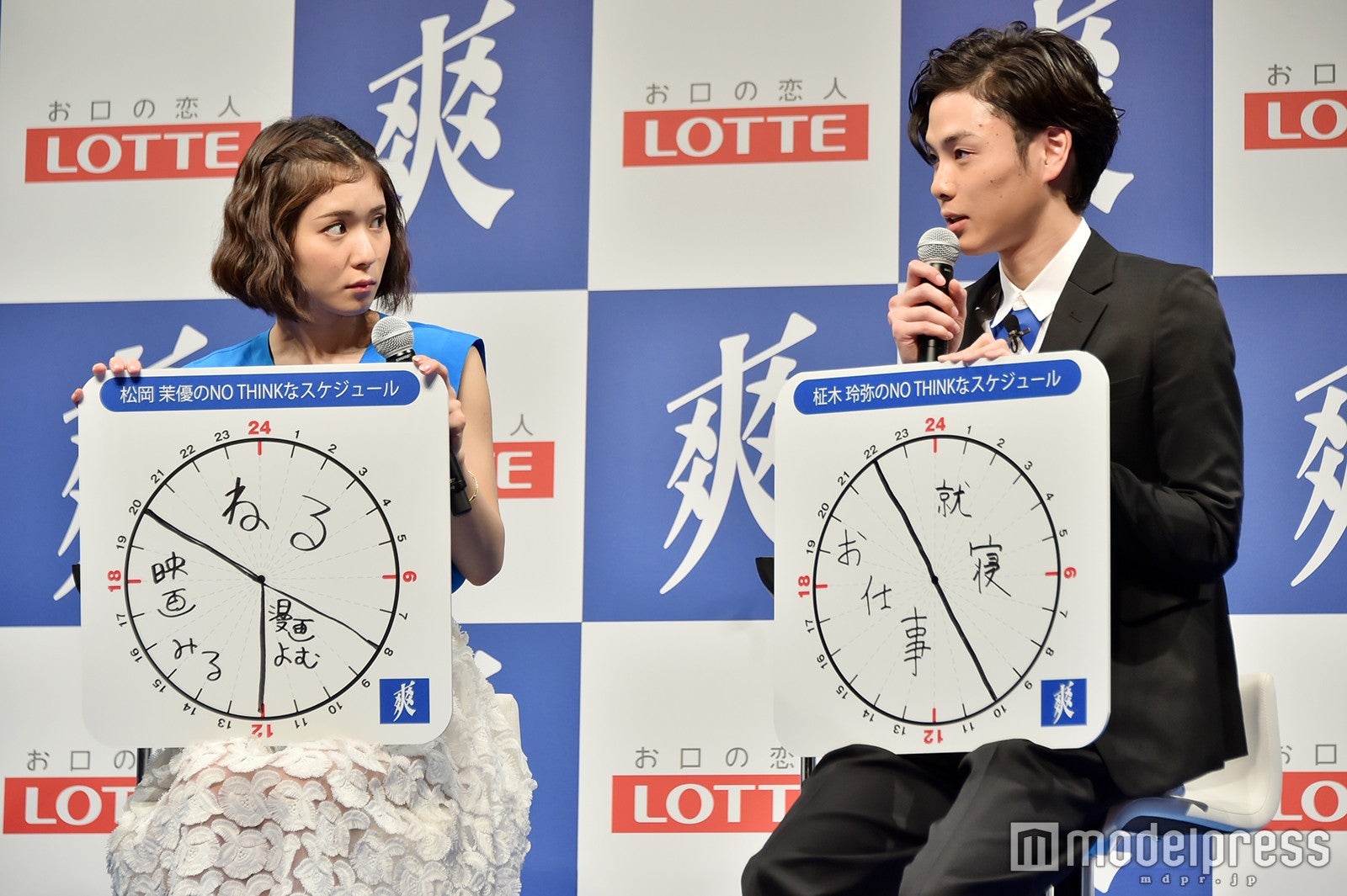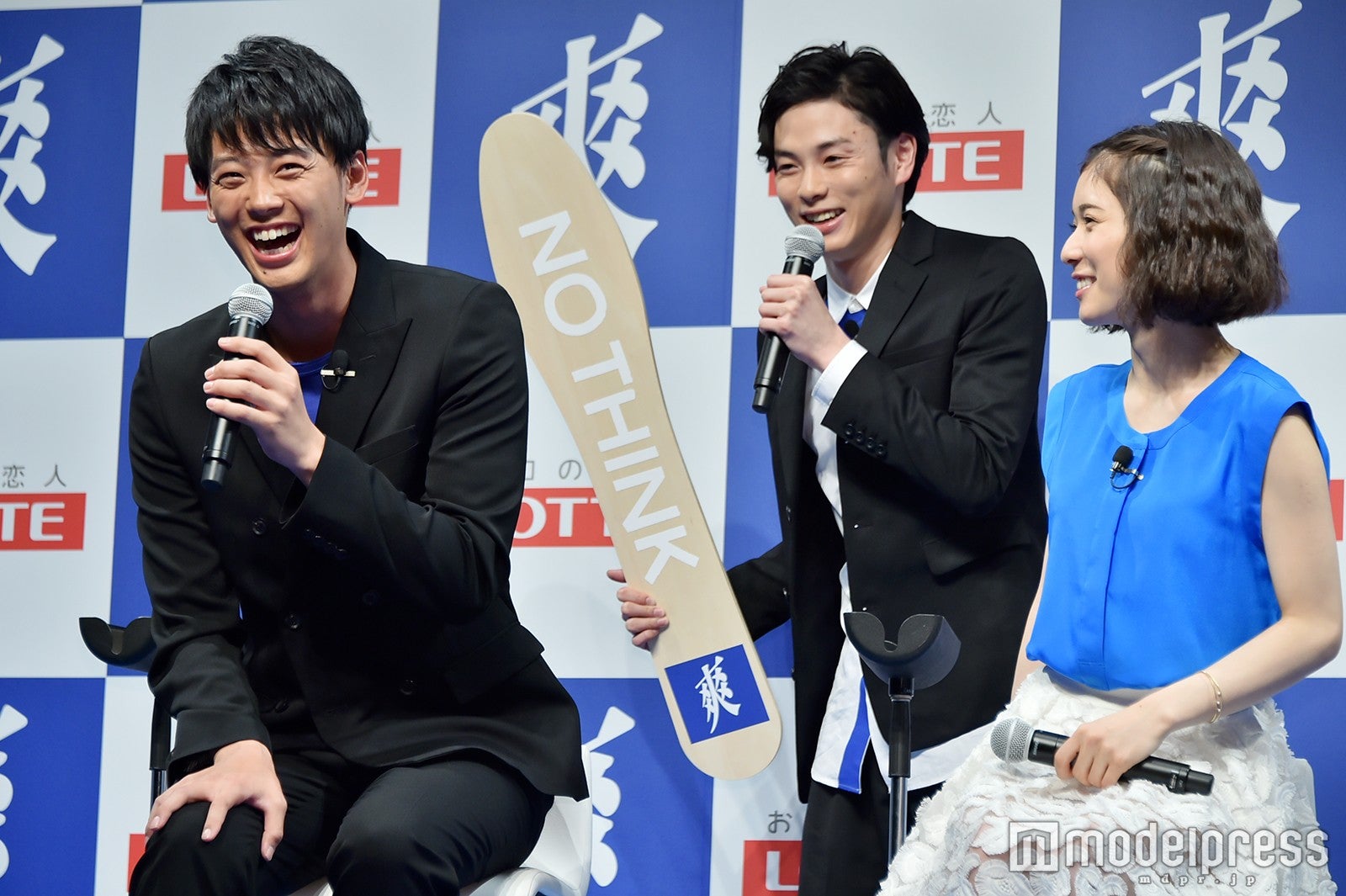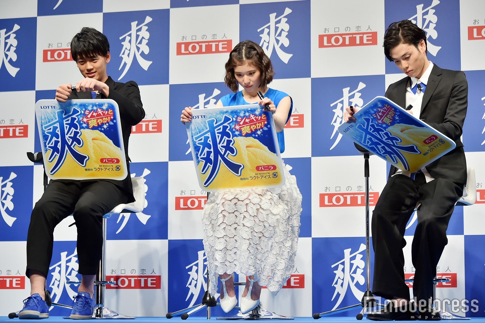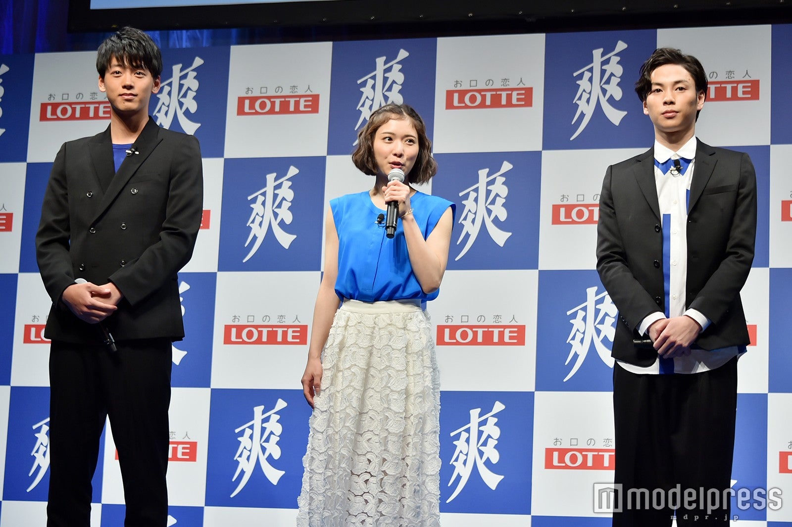 また“考えるのをやめたいこと”を問われた松岡は「自分で自分に勝負を仕掛けちゃうことが多い。『この電車に乗れなかったら、今日の仕事うまくいかない!』とか『このゴミ入らなかったら、今日のイベントでみなさんを楽しませられない!』とか。その勝負グセはやめたいなぁと」とストイックな一面を告白。続いて柾木が「21歳になるんですけど、ヒゲがすごい生えるんですよ」と悩みを告白すると、松岡は「本当だ、ちょっと青いね!」と容赦なく柾木の口元を凝視し、笑いを誘った。CM初出演の竹内は3人のうち最年長だが、CMでは最年少の役に。「違和感はなかった。長男なんですけど、割と弟っぽいと言われるので。甘えん坊だと思います」とニッコリ。185cmの長身ということもあり、松岡は「背が高い!実際に目を見てお芝居すると(カメラの)位置が違っちゃうらしくて、結構あごとか喉を見ていました。あまりお顔を拝見していないです(笑)。首が疲れる!」と裏話を明かしていた。