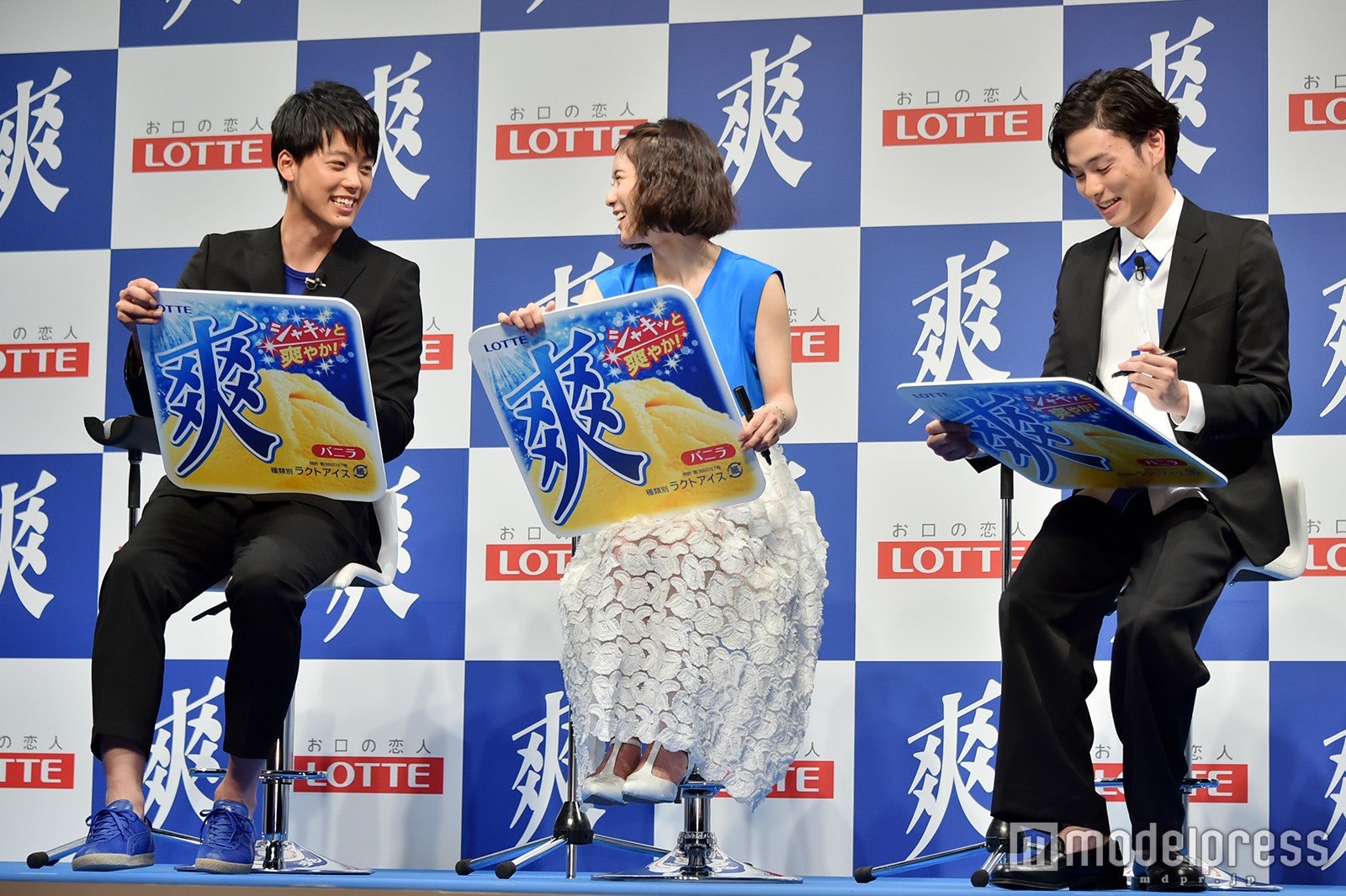 女優の松岡茉優が22日、都内で行われたアイスクリームの新CM発表会に俳優の竹内涼真、柾木玲弥と共に出席。映画、ドラマに引っ張りだこの実力派女優でありながらバラエティ番組でも活躍中の松岡は、この日も軽快なトークとアドリブでイベントを盛り上げた。