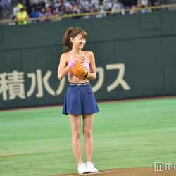 「Ray」モデルの松元絵里花が2日、東京ドームで行われる「北海道日本ハム 対 福岡ソフトバンク」戦の始球式に登板。美ボディあらわなピンクのビキニ姿で観客を魅了した松元は、勢い良く投球したものの、ボールはワンバウンドしてキャッチャーミットへ。「ノーバンでいきたかったので悔しいです。今すぐリベンジしたい!」と悔しさを滲ませた。