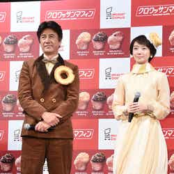 女優の波瑠が5日、都内にて開催されたドーナツショップの新商品発表会に俳優の草刈正雄と出席した。主演を務めたNHK連続テレビ小説「あさが来た」が2日に最終回を迎え、平均視聴率が関東地区で今世紀最高となる23.5%(ビデオリサーチ調べ)を記録したことについて、「本当に皆さんに楽しんで頂けるドラマに出ることができてよかったなと思います。ありがたいことです」と感謝。劇中でのセリフに絡めて「“びっくりぽん”ですか?」と尋ねられると、「“びっくりぽん”ですね」と目を輝かせた。